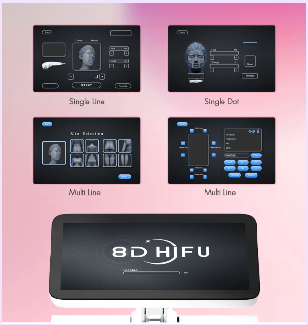 El 8D HIFU es un equipo de ultrasonido focalizado de alta intensidad para lifting facial y corporal sin cirugía.